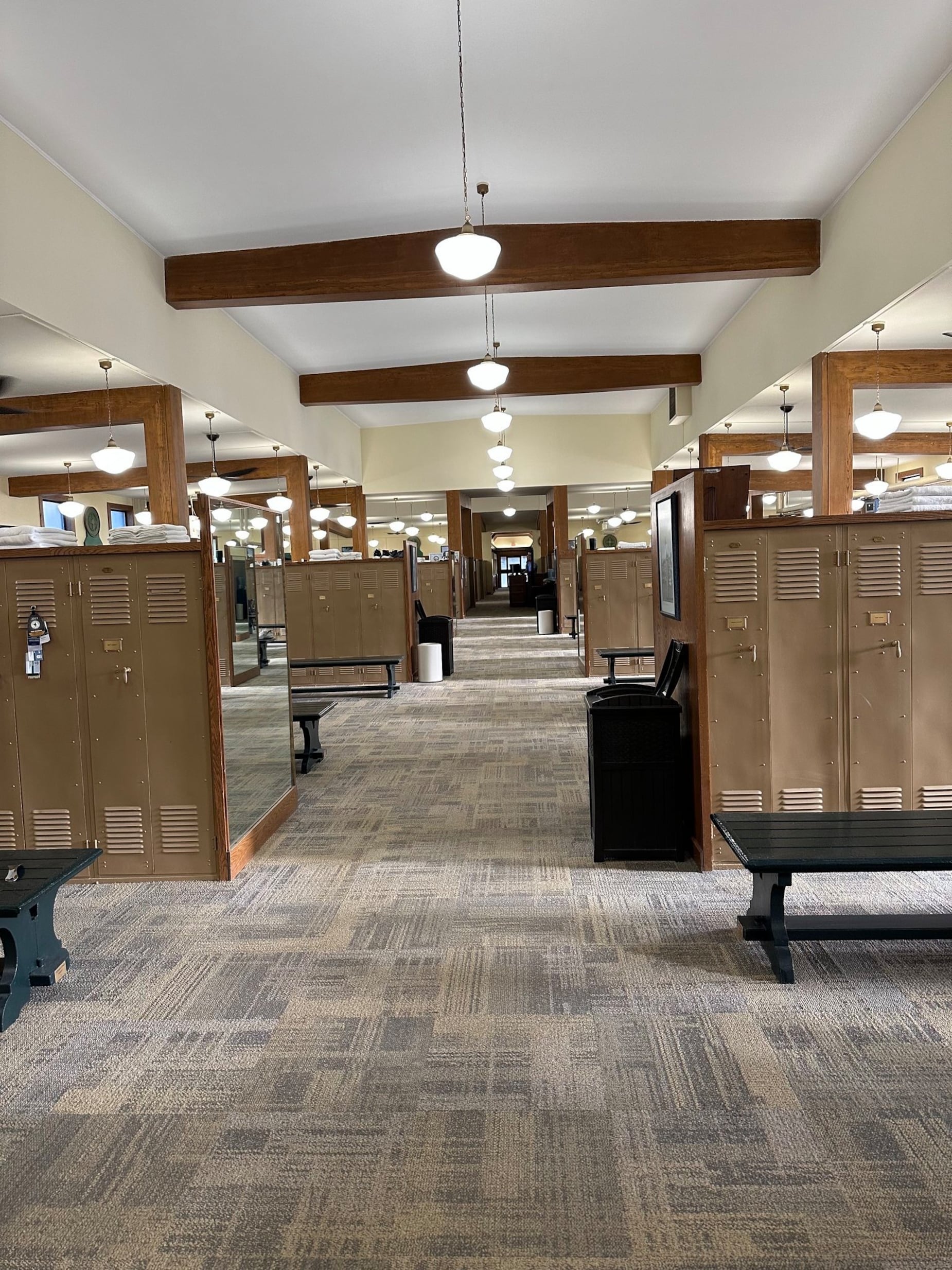 Tủ kim loại màu be giản dị, tường ốp gỗ và thảm xanh lá khiến mọi sự chú ý đều hướng về sân golf. "Lịch sử nơi đây thật phi thường và hệ thống vòi sen thật tuyệt vời," một chuyên gia nhận xét. "Được lưu lại trong câu lạc bộ giống như trải nghiệm 'Đêm trong Bảo tàng' phiên bản golf dành cho những người thuần túy yêu golf."