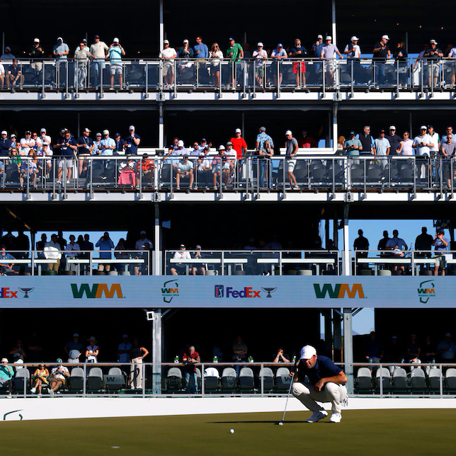 Travis Kelce đánh bóng chuẩn không cần chỉnh tại hố 16 huyền thoại ở TPC Scottsdale