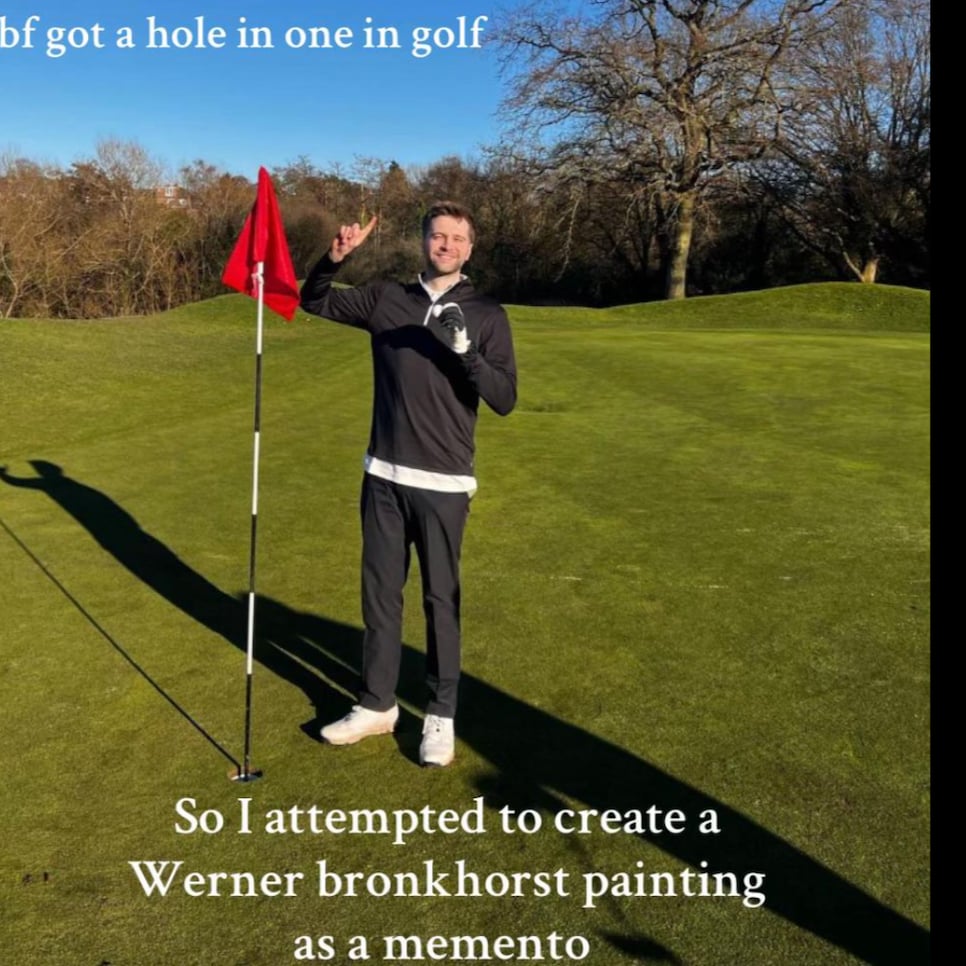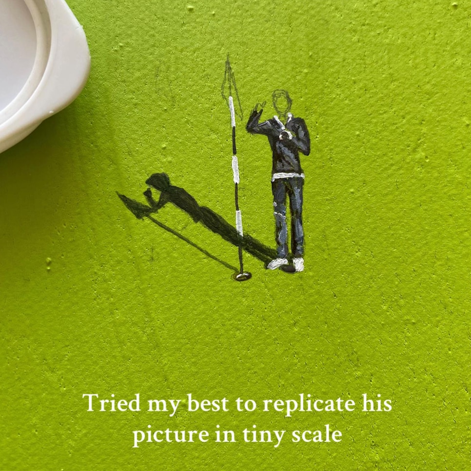 Bài đăng chia sẻ: "Bạn trai tôi vừa đạt hole-in-one. Thế là tôi quyết định thử vẽ một bức tranh theo phong cách Werner Bronkhorst để làm kỷ vật... và nhận ra mình đã *hoàn toàn* sai lầm khi ước tính thời gian để vẽ những con người tí hon."