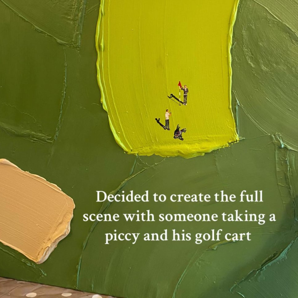 Người nghệ sĩ đã mất vài ngày để các lớp sơn khô hoàn toàn, trước khi thêm vào các chi tiết chính: chàng trai trong khoảnh khắc "hole-in-one", nhiếp ảnh gia và chiếc xe đẩy. Để bức tranh thêm sống động, cô còn vẽ thêm những golfer xung quanh và đặt nó trong một khung gỗ sồi được thiết kế riêng(!). Xem đến đây, có lẽ ai cũng phải thốt lên: "Còn điều gì mà cô ấy không làm được?"