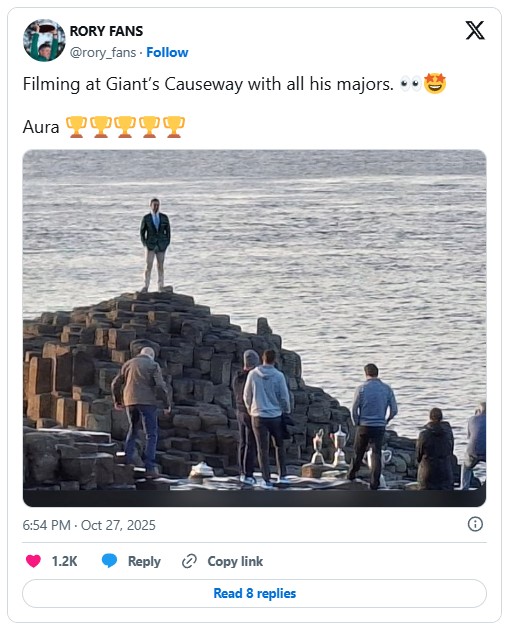 Không rõ chuyện gì đang xảy ra, nhưng khoảnh khắc Rory chụp ảnh cùng toàn bộ cúp Grand Slam và áo jacket xanh ở một khung cảnh tuyệt đẹp thật là ấn tượng!
