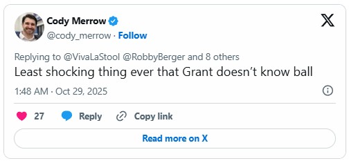 Hãy nhớ, chúng ta đang nói về một huyền thoại với 122 trận thắng với tư cách HLV tại NFL, một chiếc nhẫn vô địch Super Bowl, một cựu chuyên gia phân tích hàng đầu của Monday Night Football, và hiện là một trong những người sáng tạo nội dung bóng bầu dục nổi tiếng nhất hiện nay. Việc không biết Jon Gruden là ai quả là một lỗ hổng kiến thức quá lớn.