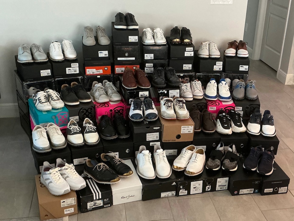 Hank có khoảng 17 thương hiệu, từ G/Fore, FootJoy Premieres đến các hãng châu Âu như Royal Albert Ross, Duca del Cosma. Anh thích những đôi giày khác thường và thường chờ giảm giá. Đôi đắt nhất anh từng mua giá 300 USD.