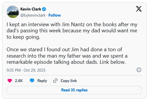 Qua cách tri ân người cha của Kevin Clark, một lần nữa người ta hiểu vì sao danh hiệu "Bình luận viên vĩ đại nhất mọi thời đại" của Jim Nantz đã được khẳng định từ lâu.