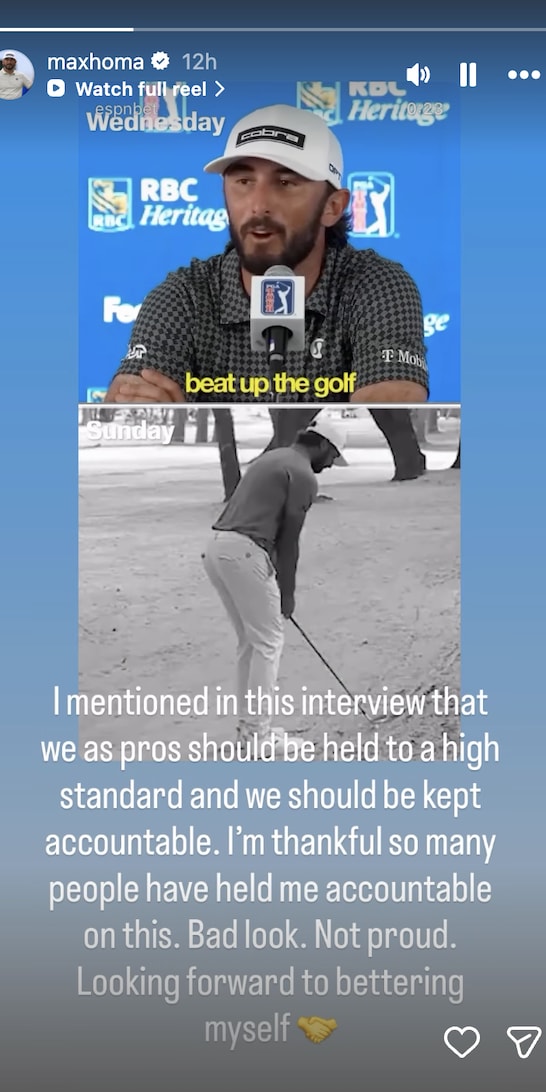 Vào thời điểm đó, những lời của Homa nghe rất thuyết phục. Thế nhưng, thời gian luôn biết cách biến chúng ta thành những kẻ đạo đức giả. Chỉ vài ngày sau đó, trong vòng đấu Chủ nhật tại Harbour Town, nhà vô địch 6 lần trên PGA Tour đã bị bắt gặp cảnh vung gậy đầy giận dữ vào khu vực cây cỏ tự nhiên sau một cú đánh hỏng.