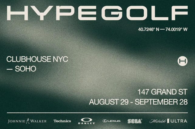 Nhân dịp kỷ niệm 5 năm Hypegolf, nền tảng này trở lại New York với Hypegolf Clubhouse, một pop-up kéo dài một tháng từ 29 tháng 8 đến 27 tháng 9 tại địa chỉ 147 Phố Grand, Manhattan. Đây là một sự kiện được tổ chức có chủ đích để tôn vinh golf không chỉ là môn thể thao, mà còn là nơi hội tụ của thời trang, lối sống và cộng đồng trong một không gian bán lẻ kết hợp văn hóa.