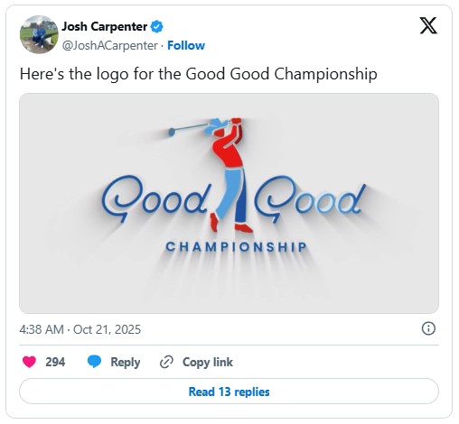 Chiếc áo này: Good Good đã có một tuần khá thành công. Những nhà sáng tạo nội dung golf phổ biến trên YouTube đã được công bố là nhà tài trợ chính cho một sự kiện PGA Tour mới có tên Good Good Championship. Đây là hình ảnh logo: